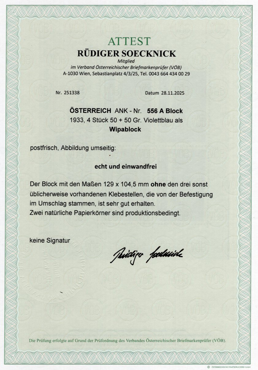 WIPA-Block 1933 ohne Klebestellen – eine Ikone der österreichischen Philatelie.